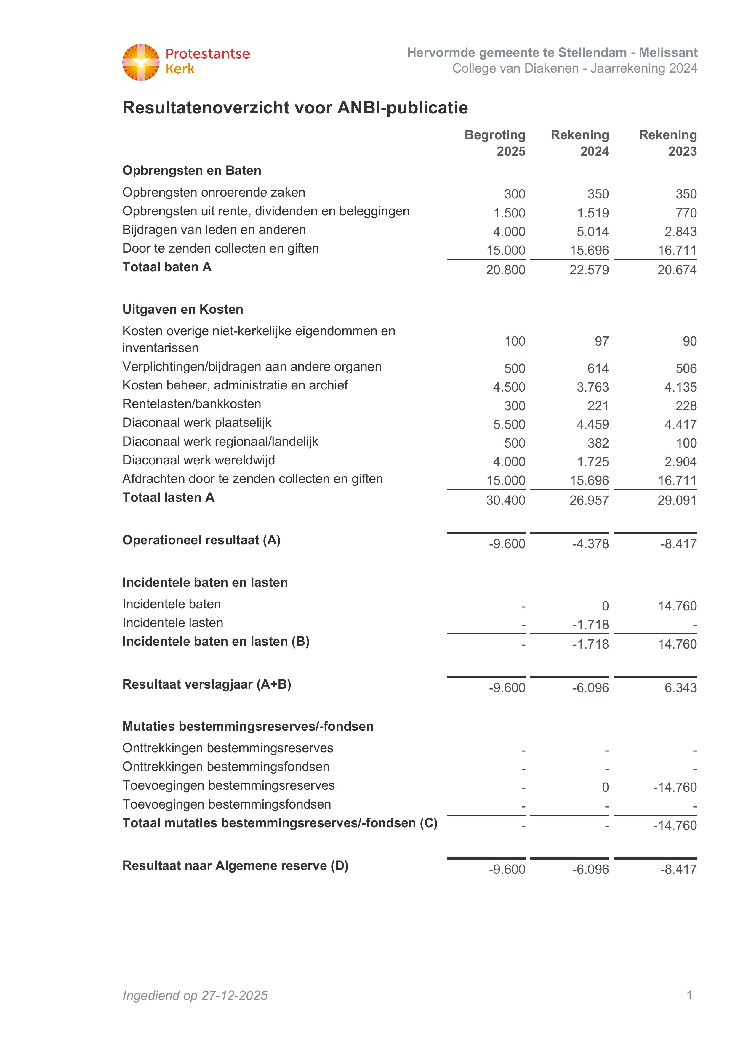 ANBI status Diakonie Hervormde Gemeente Stellendam - Melissant